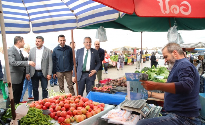 AK Parti saha çalışmalarına Tosmur Mahallesinde kurulan semt pazarı ziyareti ile devam ediyor. AK Parti Alanya İlçe Teşkilatının düzenlemiş olduğu ziyarete Milletvekili İbrahim Aydın, Milletvekili Adayı Özcan Yıldırım'da eşlik etti. Ziyaret sonrası açıklamada bulunan İlçe Başkanı Yüksek Mimar Mustafa Toklu;