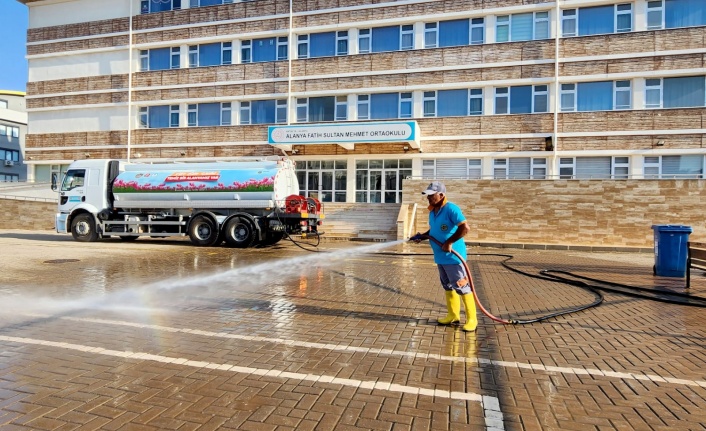 Alanya Belediyesi Temizlik İşleri Müdürlüğü’ne bağlı ekipler, kent genelindeki okulların taleplerini karşılayarak temizlik çalışmalarını gerçekleştiriyor ve okulları yeni eğitim-öğretim dönemine hazırlıyor.