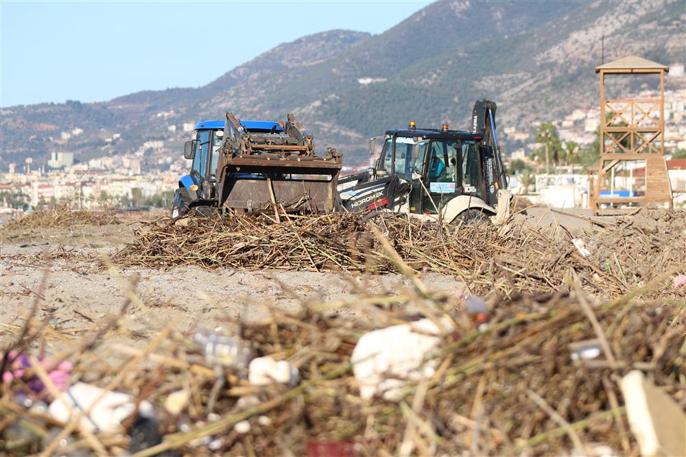 Alanya Belediyesi Temizlik İşleri Müdürlüğü, temiz ve yaşanabilir bir kent misyonuyla çalışmalarına devam ediyor. Bu kapsamda son günlerde Alanya genelinde etkili olan yağış ve fırtınanın ardından denizden kıyıya vuran atıkların temizliğine Alanya Turistik İşletmeciler Derneği (ALTİD) ile işbirliğinde başlandı. Temizlik İşleri Müdürü Adem Demir her yıl kamyonlarca çöpün denizden kıyıya vurduğunu belirterek, vatandaşları çöplerini çöp kutularına atmaları konusunda duyarlı davranmaya davet etti.