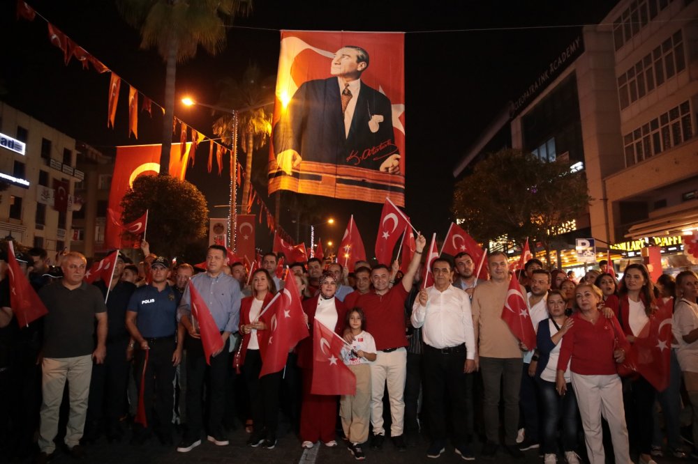 Cumhuriyet coşkusunu kalbinde hisseden binlerce Alanyalı, Cumhuriyetin 100. yıl dönümünde sokaklara akın etti. Alanya Belediyesi ve Alanya Kent Konseyi’nin işbirliğinde düzenlenen Fener Alayı, Alanya’ya tarihin en kalabalık günlerinden birisini yaşattı. Cumhuriyet sevdalısı binlerce Alanyalıyı buluşturan Fener Alayı’na Alanya Kaymakamı Fatih Ürkmezer, Alanya Belediye Başkanı Adem Murat Yücel, protokol üyeleri, siyasi parti temsilcileri, belediye meclis üyeleri, sivil toplum örgütlerinin temsilcileri, oda ve dernek başkanları, muhtarlar ve genç yaşlı on binlerce vatandaş akın etti.
