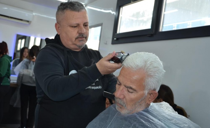 Antalya Büyükşehir Belediyesi deprem bölgesinden Alanya’ya gelen vatandaşlara kuaförlük hizmeti veriyor.