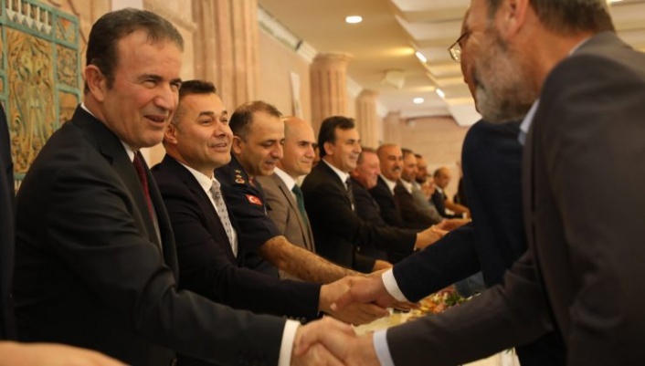 Alanya Kültür Merkezi’nde düzenlene protokol bayramlaşma sına MHP Antalya Milletvekili Abdurrahman Başkan, Jandarma Komutanı Yarbay Burak Mindivanlı, Ak Parti İlçe Başkanı Mustafa Toklu, CHP İlçe Başkanı Coşkun Karadağ, MHP İlçe Başkanı Mustafa Türkdoğan, İyi Parti ilçe Başkanı Alper Arıkan, ALTSO Başkanı Mehmet Şahin, kamu kurum müdürleri, Alanya Gazeteciler Cemiyeti, sivil toplum kuruluşu temsilcileri, meclis üyeleri, muhtarlar ve vatandaşlar katılım göstererek bayramlaştı. AKM’de yapılan bayramlaşma töreninde vatandaşların bayramını tebrik eden protokol mensupları pandemi kurallarına büyük oranda uymaya devam etti. Protokol bayramlaşmasına ALTSO Başkan adayı hayırsever iş insanı Eray Erdem, Bilal Gömeç, Tunahan Toksöz de kalabalık bir ekiple katılım sağladı.