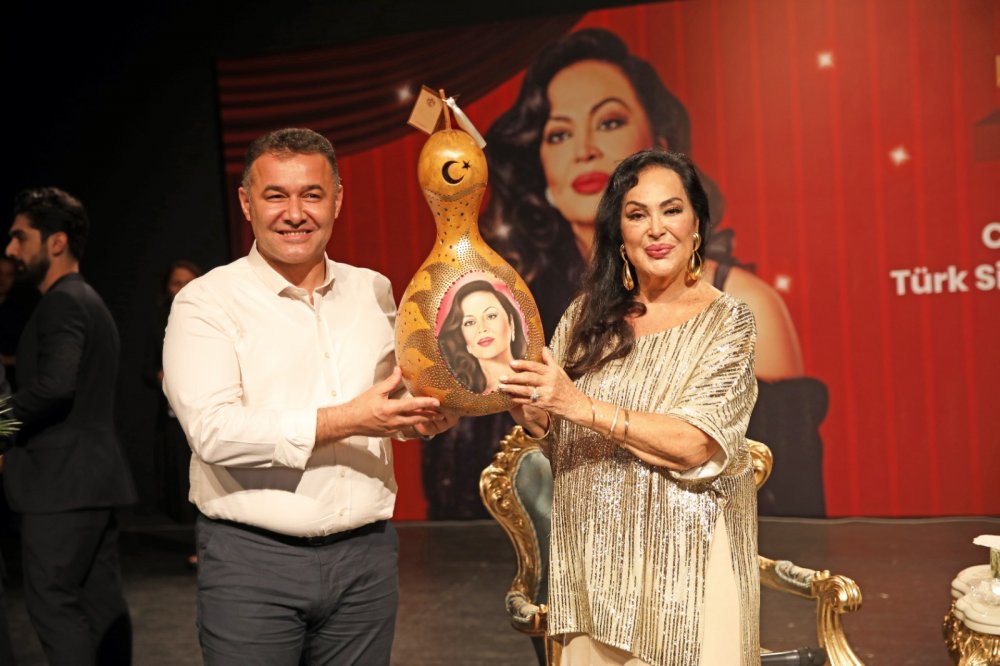 Alanya Kaymakamı Dr. Fatih Ürkmezer, organizasyonun ardından sahneye gelerek Türkan Şoray’a çiçek takdim ederken, Alanya Belediye Başkanı Adem Murat Yücel ise Türk Bayrağı motifli tablo ve üzerinde Türkan Şoray’ın portresi bulunan, ay yıldız işlemeli Alanya Su Kabağı hediye etti.