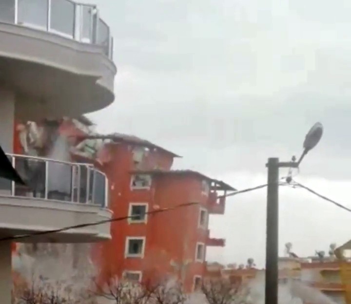 Şekerhane Mahallesi Azaklar Sokak’ta bulunan Villa Moon Flower Otel’in alınan önlemler sonrası kontrollü bir şekilde yıkımı gerçekleştirildi. Otel saniyeler içinde olduğu bölgeye yıkılırken, etrafı toz bulutu kapladı. Yıllardır Alanya’da hizmet verdiği öğrenilen otelin yıkım anı ise bir vatandaşın cep telefonu kamerasına yansıdı.