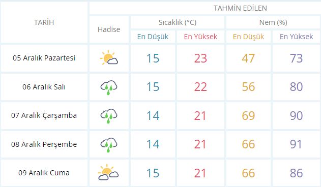 Meteoroloji tarafından yeni haftaya dair hava durumu tahminleri yayımlandı. Alanya’da kendini gösterecek yağışlı hava ile birlikte hava sıcaklıklarında birkaç derecelik düşüş beklense de sıcaklık değerleri mevsim normalleri seviyesinde olacak.