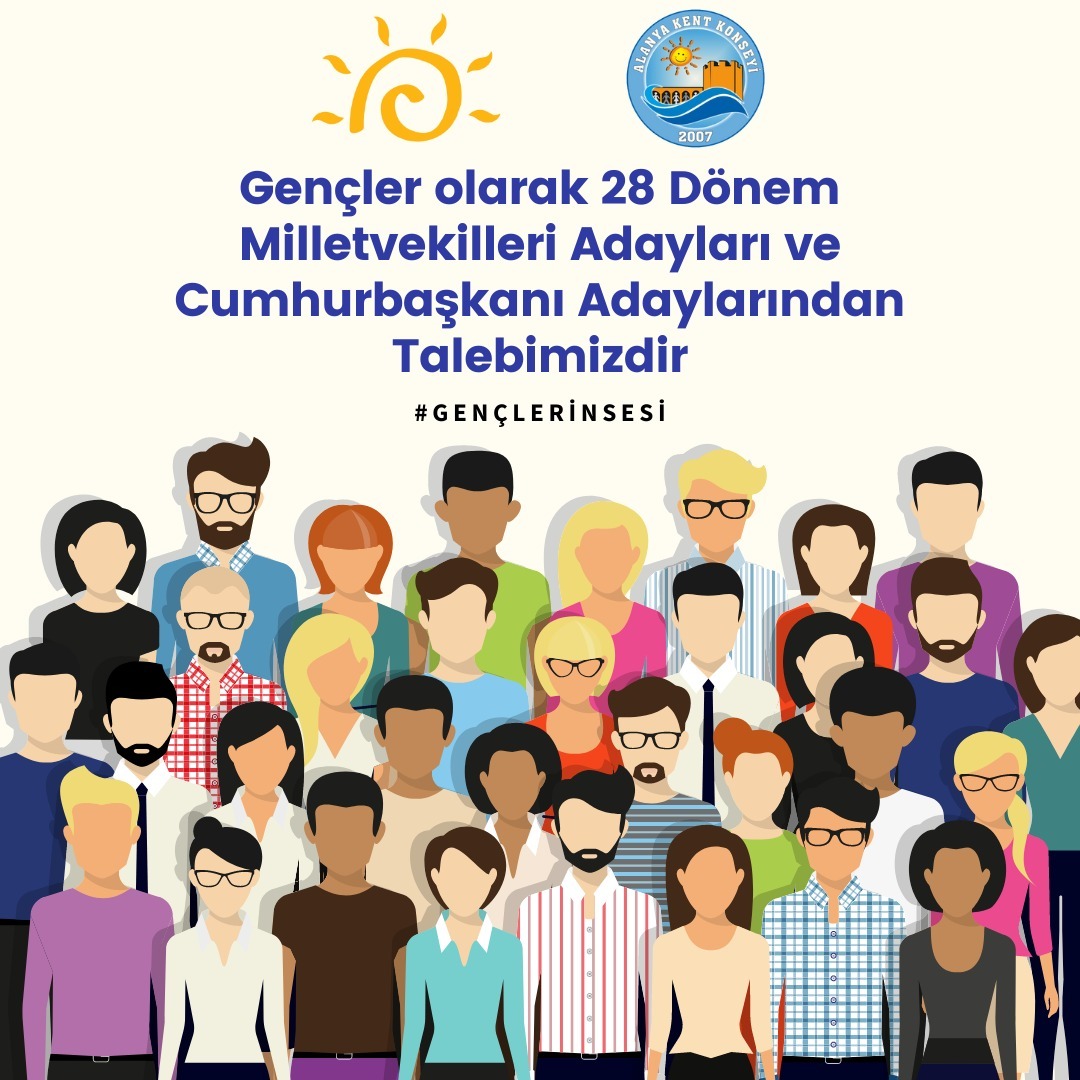 Alanya Kent Konseyi'nden yapılan açıklamada şu ifadelere yer verildi: Alanya Kent Konseyi Gençlik Meclisi ve Akdeniz Gençlik Derneği olarak, 28. dönem milletvekilliği ve cumhurbaşkanlığı seçimleri öncesi gençlerin sorunlarını ve taleplerini belirlemek adına farklı sivil toplum kuruluşlarından ve öğrenci topluluklarından 74 gencin katılımıyla bir online atölye çalışması düzenledik. Bu çalışmada, gençlerin beklentilerini ve milletvekili ve cumhurbaşkanı adaylarından taleplerini tespit ettik. İşte o sonuçlar:
