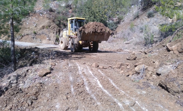 Diğer yandan göçük meydana gelen Dim Alacami yolunda ise taş duvar çalışması yapılarak yol güvenli hale getirildi.