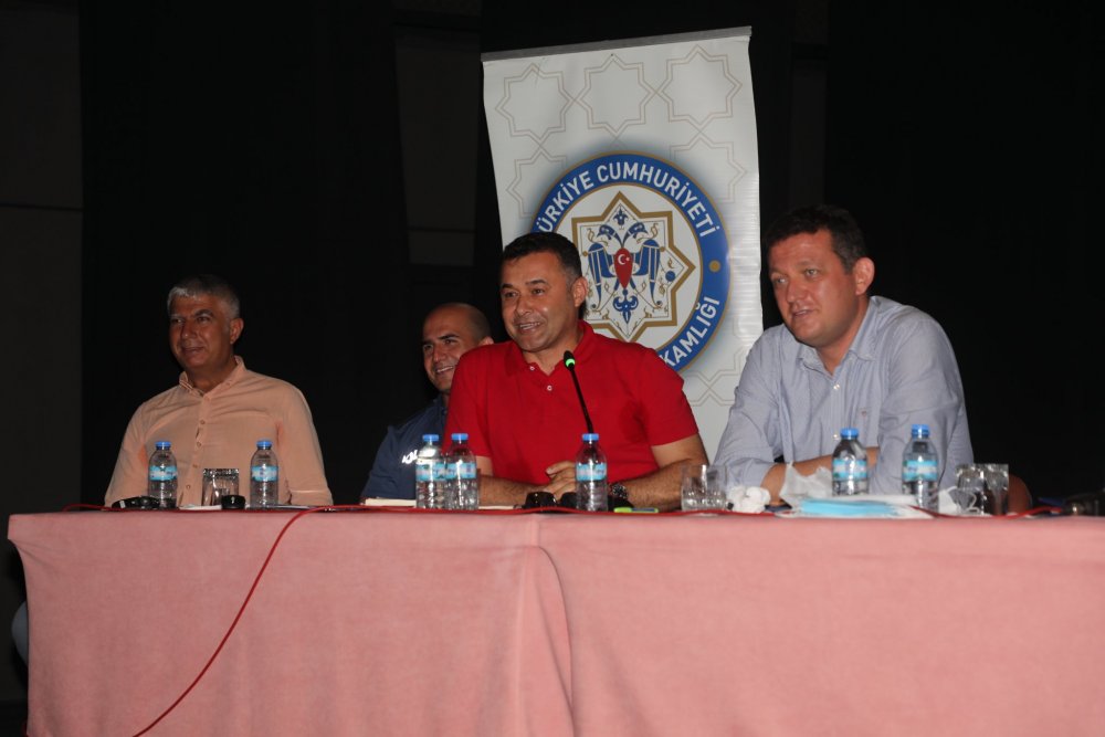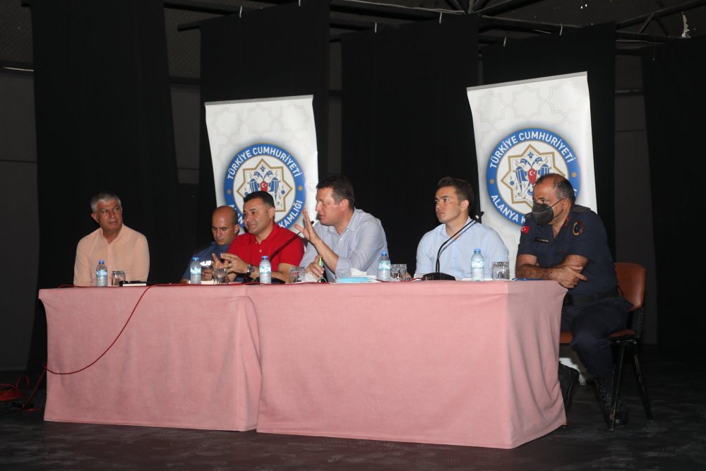 Alanya Kültür Merkezinde gerçekleştirilen toplantıya Kaymakam Ürkmezer başkanlığında; Kaymakam Refiki Ramazan Kıyak, Alanya Belediye Başkanı Adem Murat Yücel, Alanya Jandarma Komutanı Yrb. Engin Burak Mindivanlı, Alanya İlçe Emniyet Müdürü Murat Kenan Patat, İl Göç İdaresi Müdürü Derya Erdoğan, İlçe Milli Eğitim Müdürü Yusuf Yılmaz , Kurum amirleri ve muhtarlar katıldı.