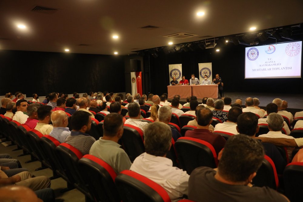 Bilgilendirmelerden sonra konuşma yapan Kaymakam Ürkmezer ‘’ Değerli mahalle muhtarlarımız İlçemizle ilgili yapılacak çalışmaları, alınacak kararları, mahallelerinizle ilgili ihtiyaç, sorun ve talepleri sizlerle bir araya gelip desteklerinizle çözmeye çalışıyoruz. Bugün yaptığımız muhtarlar toplantımızda ise; İlçe Milli Eğitim Müdürlüğümüz tarafından; başlayacak olan yeni eğitim öğretim yılında ilçemizdeki okullar ve öğrencilerin durumları hakkında bilgilendirmeler yapılacak. Bir yandan da mahallelerinizdeki istek, sorun, ihtiyaç ve taleplerinizi ilgili kurum amirleri ile birlikte dinleyip çözüm üretmeye çalışacağız. Alanya’mızın huzuru için çalışan emek veren tüm muhtarlarımıza teşekkür ediyorum’’ dedi.
