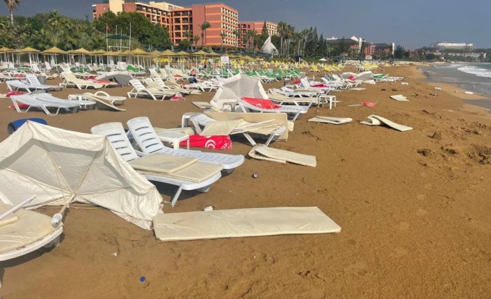 Meteorolojinin, Antalya’nın merkezi doğusu ve iç kesimlerde yerel kuvvetli gök gürültülü sağanak yağış uyarısı saat 17.00’da Alanya’nın İncekum Plajı’nda etkili oldu. Aniden bastıran sağanak yağış ve kuvvetli fırtınayla birlikte sahildeki yüzlerce tatilci kısa sürede plajı boşalttı. Onlarca şemsiye havaya ve denize uçarken plajdaki bazı locaların örtüleri fırtına nedeniyle yırtıldı.