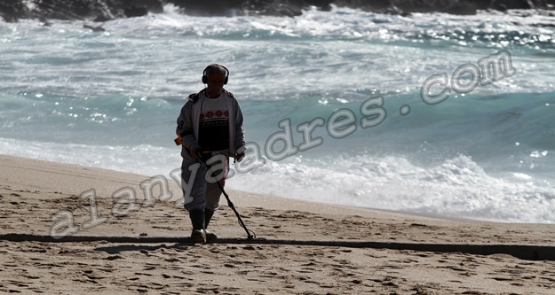 Alanya’da son iki haftadır etkili olan fırtına ve sağanak yağmurun ardından güneşli havanın kendisini göstermesiyle birlikte sahiller define avcılarının akınına uğradı. Define avcıları, yazın turistler tarafından düşürülen ve denizin hava şartlarıyla sahile vurduğu eşyaları bulabilmek için plajlarda dedektörlerle arama yaptı.