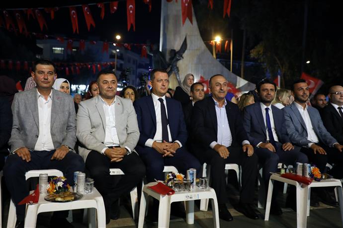 Başkan Yücel’in konuşmasının ardından Alanya Kaymakamı Fatih Ürkmezer ve Ak Parti Antalya Milletvekili Mustafa Köse konuşmalarını gerçekleştirdiler. Son olarak ise Dışişleri Bakanı Mevlüt Çavuşoğlu Alanya halkına seslendi. Bakan Çavuşoğlu, “Günlerce süren demokrasi nöbetleriyle bu meydanı hınca hınç doldurarak tüm dünyaya verdiğiniz güçlü mesaj için devletimiz adına hepinize şükranlarımı sunuyorum. 15 Temmuz gecesi milletimizin yazdığı destan birliğimizin, kardeşliğimizin destanıdır. Bu birlik altı yıl sonra bugün daha güçlüdür. Dışarıda içeride gücümüzün kaynağı; milletimizin duası, birliğimizin devamıdır. Şehitlerimizin ve gazilerimizin mirasına layık olmak boynumuzun borcudur. Bunun için bize yorulmak yok. Bize durmak yok. Çalışmaya, milletimizin hak ve çıkarlarını her yerde korumaya devam edeceğiz. Hamdolsun, ülkemiz üzerinde oyunlar oynayanlar başarılı olamadı, olamayacak. Yeter ki biz bir olalım, birlik olalım. Sayın Cumhurbaşkanımızın liderliğinde, milletimizin desteğiyle aşamayacağımız engel yok. Bir kez daha şehitlerimizi rahmetle, gazilerimizi minnetle anıyor, sevgilerimi ve saygılarımı sunuyorum. Allah’a emanet olun.” dedi.