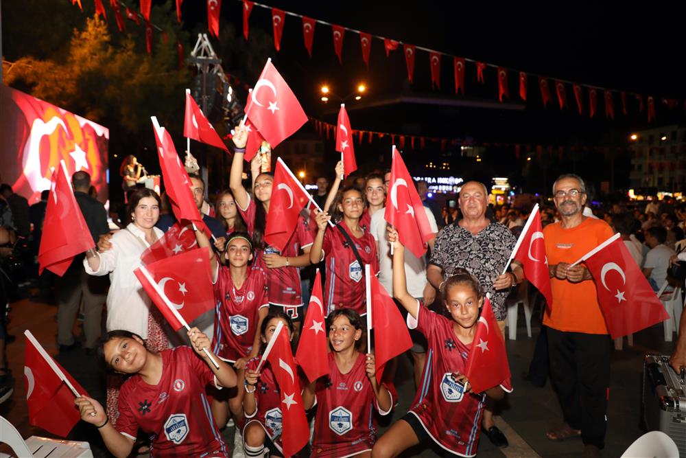 Yapılan dualara hep birlikte el açan vatandaşlar, şehitlerimizi bir kez daha saygı ve minnetle andılar. Ardından, Cumhurbaşkanı Recep Tayyip Erdoğan’ın 15 Temmuz Demokrasi ve Milli Birlik Günü konuşması dev ekrandan vatandaşlara izletildi. Protokol üyelerinin konuşmaları ile devam eden programda Alanya Belediye Başkanı Adem Murat Yücel bir konuşma gerçekleştirdi. Başkan Yücel konuşmasına, “Tarihimize kara bir leke olarak yazılan 15 Temmuz Darbe Girişimini bir kez daha kınıyorum. 15 Temmuz; inancın, işgale karşı kahramanca direnişidir. 15 Temmuz; salaların vicdanlarda oluşturduğu inşirahtır. 15 Temmuz; milli birlik ve dayanışma ruhuyla, Türkiye’nin karanlık bir uçurumun kıyısından çekilip, alındığı tarihtir. 15 Temmuz, bu nedenlerle Demokrasi ve Milli Birlik Günü’dür. 15 Temmuz, Cumhurbaşkanımız Sayın Recep Tayyip Erdoğan’ın çağrısı ve Türk Dünyası’nın hamisi Genel Başkanımız Sayın Devlet Bahçeli’nin dik ve tavizsiz duruşuyla Türk Milleti’nin tek yürek halinde canı pahasına yazdığı şanlı bir destandır.” dedi.