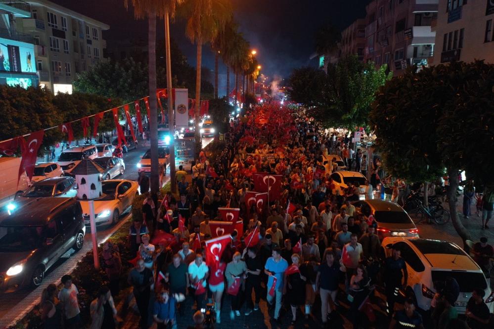 Alanya'da 30 Ağustos Zafer Bayramı’nın 100. yılı coşkuyla kutlandı. Atatürk Heykeli önünde başlayan fener alayında caddeler adeta insan seline döndü. Binlerce insanın katıldığı fener alayına ilçede tatilini yapan yerli ve yabancı turistler de büyük ilgi gösterdi. Yürüyüşün başlamasıyla kaldırımlarda ilerleyen turistler önce cep telefonları ile bu anları kaydetti ardından yürüyüşe dahil oldu. Bazı esnaflar da konfeti ve meşaleler yakarak kutlamalara renk kattı. Belediye binası arkasında son bulan yürüyüşün ardından Emir Can İğrek hayranlarıyla buluştu. Konser öncesi gerçekleşen havai fişek gösterisi büyük beğeni topladı. Binlerce vatandaş İğrek’in şarkılarına eşlik ederek doyasıya eğlendi. Vatandaşların Zafer Bayramını kutlayan Alanya Belediye Başkanı Adem Murat Yücel, “Kurtuluş savaşını sona erdiren büyük taarruz zaferinin 100. yıldönümü milletçe idrak etmenin mutluluk ve gururunu yaşıyoruz. Malazgirt zaferiyle doğduğumuz bu topraklarda büyük taarruzlarla doğrulmayı başardık. Sonsuza kadar da var olmaya and içtik" dedi.