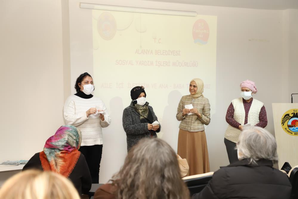 Alanya Belediyesi Aile Kadın Destek Merkezi’nde, Diyetisyen Şule Yavuz Demir ve Psikolog Esra Yemez eşliğinde ‘Sağlıklı Beslenme ve Obezite’ ile ‘Aile içi İletişimin Önemi’ semineri gerçekleştirildi. Seminerde yeterli ve dengeli beslenme, besin grupları, günlük besin ihtiyaçları, hastalıklardan korunma, obeziteden korunma yöntemleri, evlilik, aile içi iletişim, anne baba tutumları, evlilikte roller konu başlıkları aktarıldı. Sağlıklı nesillerin yetişmesi ve toplumsal düzenin devamı için emek verilmesi gerektiği ve bunun içinde bu gibi faaliyetlere katılımın önemi vurgulandı. Seminerler yeni konu başlıklarıyla diyetisyen ve psikolog eşliğinde ilerleyen günlerde de devam edecek.