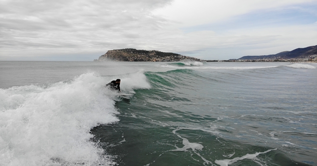 Türkiye'nin özellikle doğu illerinde kar ve soğuk hava etkili olurken, Alanya’da ise 3 gündür etkili olan sağanak yağışın ardından hava yerini güneşe bıraktı. Hava sıcaklığının 21, deniz suyu sıcaklığının 19 derece ölçüldüğü ilçede yazdan kalma günler yaşanıyor. Dalga boyu 4 metreyi bulan ilçede, güneşli havayı ve dalgalı denizi fırsat bilenler sahilde zaman geçirdi. Türkiye’nin farklı illerinden gelen ve aralarında yerleşik yabancı uyruklu kişilerinde olduğu 30 sörfçü, Keykubat Plajı'nda sörf tahtalarıyla kendilerini dalgalara bıraktı. Dakikalarca sörf tahtasının üzerinde duran sörfçüler bu anları keyfe çevirdi. Saatlerce sörf tahtasının üzerinde akrobatik hareketler sergileyen sörfçüler, sahildekilerin de ilgisini çekti.