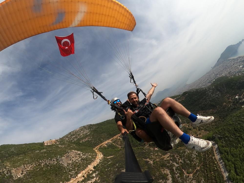 Cumhuriyet'in kuruluşunun 100. yıl dönümüne özel bu etkinliği gerçekleştirdiklerini belirten Alanya Sosyal Hizmet Merkez Müdürü Ahmet Çelik ise, "Biz de şehit yakınlarımız ve gazilerimizle birlikte Cumhuriyet coşkusunu havada kutlamak istedik. Emeği geçen tüm arkadaşlarımıza çok teşekkür ediyorum" ifadelerini kullandı.