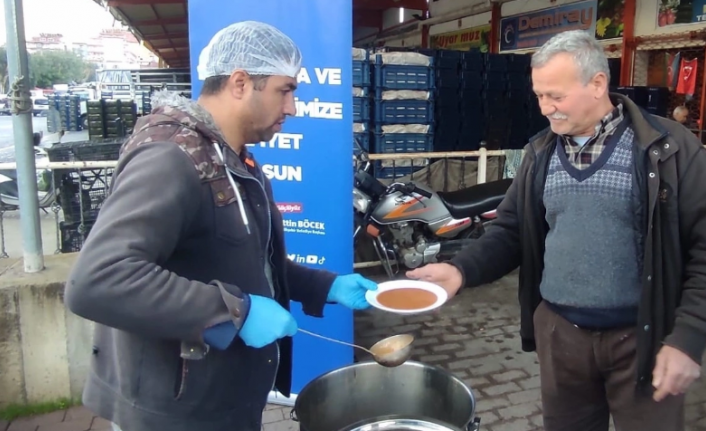 Antalya Büyükşehir Belediyesi Sosyal Hizmetler Dairesi Başkanlığı Alanya Aşevi, Alanya Toptancı Hali’nde geleneksel hale getirdiği çorba ikramını sürdürüyor. Sabah gün doğmadan işe başlayan hal esnafı ve üreticiler, Büyükşehir Belediyesi’nin ikramı olan çorba ile içlerini ısıtıyor. Büyükşehir Belediyesi, her hafta Perşembe günleri Hal Müdürlüğü önünde kurulan stantta çorba dağıtımı yapmaya devam edecek.