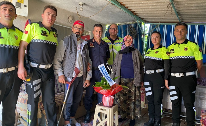 Alanya’da jandarma ekipleri tarafından ‘Trafik Haftası’ kapsamında kaza sonucu engelli olan vatandaşları evinde ziyaret etti.