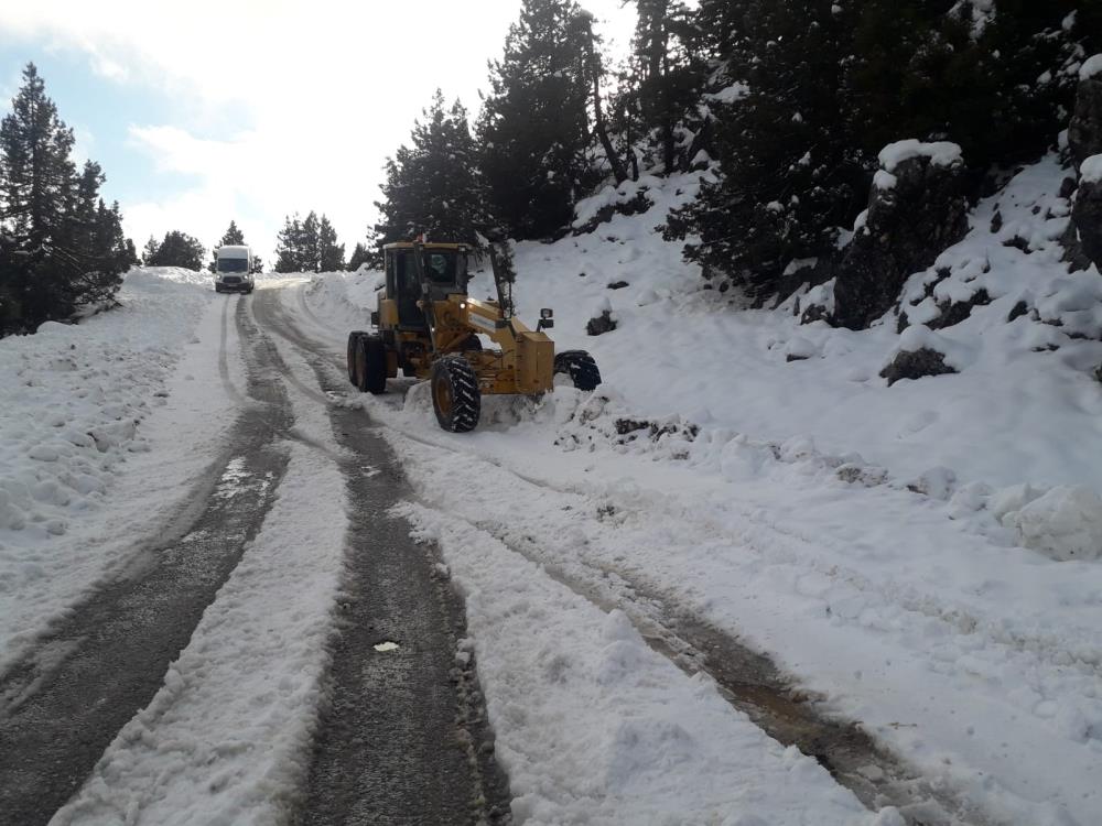 Antalya’da hafta sonu etkili olan yağışlar Toroslar’ın yüksek kesimlerinde yoğun kar yağışını da beraberinde getirdi. Antalya’nın özellikle doğusundaki ilçelerin yaylalarında etkili olan kar yağışı hayatı olumsuz etkilerken, ulaşımda da zaman zaman aksamalara neden oldu. Harekete geçen Büyükşehir Belediyesi Kırsal Hizmetler Dairesi Başkanlığı ekipleri, bir taraftan yolları açarken, diğer taraftan mahsur kalan vatandaşlara da yardım elini uzattı. Alanya kırsalında üç gündür yoğun bir şekilde çalışan ekipler, son olarak Alanya Karaman sınırındaki Dikenli ve Gazipaşa Karamanlar yayla yollarında kar temizliği yaptı. Gece ve gündüz aralıksız devam eden çalışmalar neticesinde yollar ulaşıma açıldı.