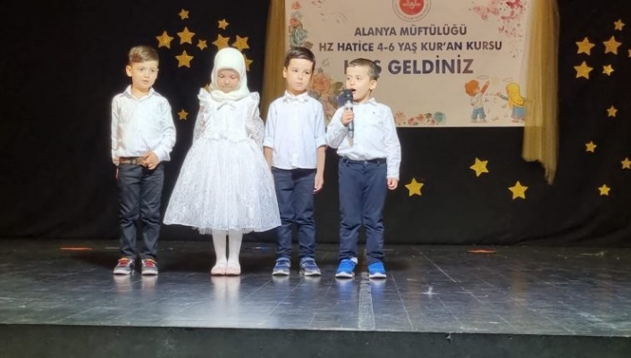 Alanya Müftülüğü’ne bağlı Hz Hatice 4-6 yaş grubu Kur’an Kursu’nda Kur’an-ı Kerim okumayı öğrenen 29 öğrenci için yıl sonu programı düzenlendi.