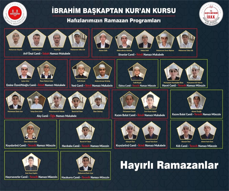 Ramazan ayı boyunca devam edecek olan mukabele programları kapsamında Alanya Müftülüğü’ne bağlı İbrahim Başkaptan Kur’an Kursu öğrencileri de mukabele okuyorlar. Sözlükte “iki şeyi birbiriyle karşılaştırmak” anlamına gelen mukabele, üç aylarda ve bilhassa Ramazan aylarında cami, mescit ve evlerde daha çok sabah, öğle, ikindi namazları öncesinde hafızlar tarafından okunan Kur’an’ı takip etmek suretiyle hatim indirme geleneğine ad olmuş, zamanla hafızların bu okuyuşları için de aynı terim kullanılmıştır.