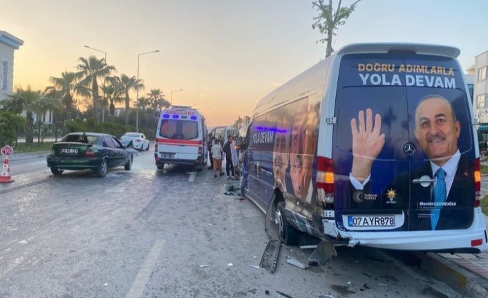 Alanya’da otomobil, park halindeki seçim aracına çarptı