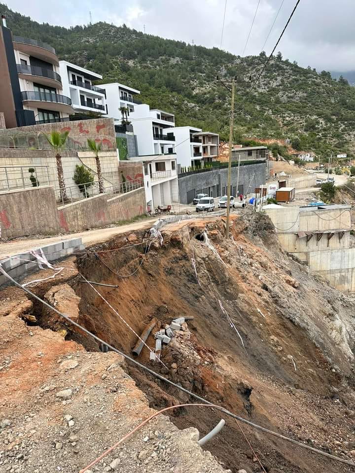Kuzey Alanya’nın Hıdırellez yolu çöktü, can kaybı yaşanmadı. Yolun hemen üzerindeki milyon euro’luk villaların sahipleri ise panik halinde. Erozyonun nasıl olduğu bilinmezken, yola taş duvar örülmeden ya da beton perde çekilmeden yol açılması tepki çekti. Bölge sakinleri, “Burası kaygan zemine sahip bir bölge. Buraya ruhsat verilirken hangi kriterler göz önüne alınıyor. Önüne taş veya beton duvar yapılmadan yol nasıl açılabiliyor” dediler.