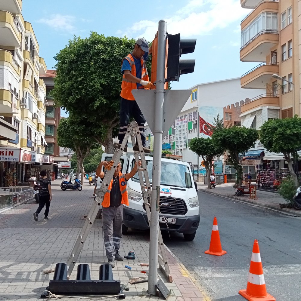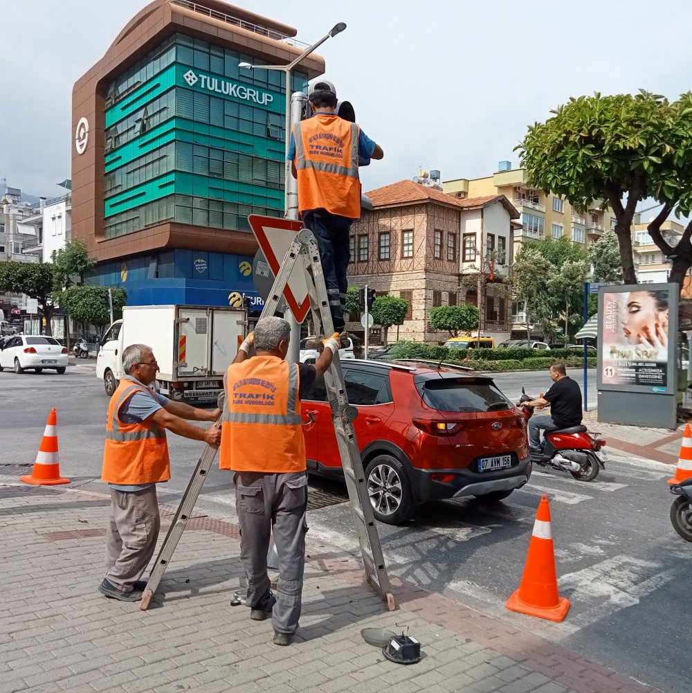 Antalya Büyükşehir Belediyesi, Trafik Şube Müdürlüğü Alanya ekipleri, ilçe merkezindeki trafik sinyalizasyon ünitelerini yenileme ve bakım onarım çalışmalarını sürdürüyor. Daha önce sarı renkte olan eski üniteler rengi siyah olan yeni ünitelerle değiştiriliyor. Şu ana kadar Alanya merkezinde Atatürk  Bulvarı ve Ahmet Asım Tokuş Bulvarı’ndaki üniteler yenilendi. Büyük bölümü yenilenen 25 metrelik yol üzerindeki trafik sinyalizasyon ünitelerin de ise sona gelinde 25 metreli yol ve Alaiye Caddesi’ndeki 4 kavşaktaki ünitelerinde yenilenmesiyle Alanya’daki trafik sinyalizasyon yenileme çalışmaları tamamlanmış olacak. Hedef bayram öncesi çalışmayı tamamlamak.