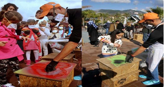 Çocukların da ahşap evler üzerine resimler yaptığı şenlik alanı sokak hayvanlarına destek olmanın önemi hakkında farkındalık yaratırken çocuklar için de eğlenceli bir etkinlik ortamına dönüştü.
