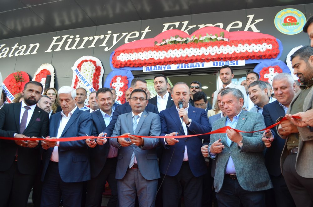 Türkiye olmasa Rusya ve Ukrayna arasındaki tahıl anlaşmasının imzalanamayacağını vurgulayan Çavuşoğlu, “Dünyayı biz gıda krizinden kurtardık. Dünyadaki her bir haneye katkımız var. Esir takasını bizim üzerimizden yapıyorlar. Niye? 2 taraf da bize güveniyor. Nükleer santralle ilgili konularda bize gelip konuşuyorlar. Bu denge politikasını bozamayız. Bazı siyasetçiler ‘Rusya’ya yaptırım uygulayacağız. Biz NATO üyesiyiz’ diyor. Biz de NATO üyesiyiz. Ben milletimin, ülkemin çıkarlarını her şeyin üzerinde tutmam lazım. Rusya’ya yaptırım uyguladım. Peki Alanyalılar ürününü Rusya’ya s-nasıl satacak? BM yaptırımı olsa ben ona uymak zorundayım. Ama herkesin kafasına göre haklı ya da haksız uyguladığı yaptırıma uyarsan, birilerine yaranmak için ilkeli politikandan vazgeçersem ülkemin çıkarlarını riske atarım. Böyle bir durumda Türkiye’ye turist gelir mi? Biz turist gelecek mal satalım diye ilkelerimizden vazgeçmiyoruz. Montrö’yü sonuna kadar uyguluyoruz. Ukrayna’nı sınır ve toprak bütünlüğünü sonuna kadar destekliyoruz. Ukrayna’yı destekliyoruz. Kırım’ın illegal ilhakın tanımıyoruz. Bu ilkeli duruş değil mi? Rusya’ya yaranacağız diye bir derdimiz yok. Böyle bir derdimiz olmaz. 3-5 oy alacağız diye ülkenin güvenliğini, istikrarını riske atacağız, onu, bunu serbest bırakacağız diye bir şey olmaz. Kanun Hükmünde Kararnameler ile atılan insanları devletin kadrosuna vereceğiz dersek bu ülkeyi heba ederiz. Bölücübaşlarını çıkaracağız dersek heba ederiz. Benim bakanlığıma hile ile girmişler. 630 FETÖ’cü atıldı. Burası devletin sırrının olduğu yer. Nasıl olacak şimdi bunlar gelecek benim bakanlığa? Devletin bütün sırlarını belli istihbaratlara ve diğer ülkelere veriyor. Bu nasıl olacak? FETÖ’nün talimatıyla karar veren hakim ve savcıları döndürdüğün zaman adalet olur mu? Ne demek 28 eyalete böleceğiz. Belediyeler aldığı zaman oranın gelirlerinin hepsi PKK’ya gidiyordu. Sen Türkiye’yi nasıl eyalete böleceksin? Kime söz verdin? Olmaz” ifadelerini kullandı. Konuşmasının ardından Bakan Çavuşoğlu’na Göktepe tarafından çiftçilik belgesi takdim edildi. Toplu dua yapılmasının ardından ziraat odasının resmi açılışı Bakan Çavuşoğlu ve protokol üyeleri tarafından kurdele kesilerek yapıldı. Açılışın ardından Bakan Çavuşoğlu ve protokol üyeleri oda binasını gezdi.