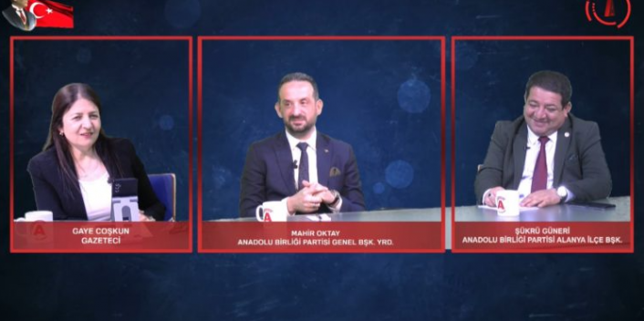 Alanya Posta TV’nin manşet attır-an programı Gazeteci Gaye Coşkun’un sunduğu Haberin Manşeti programının bu haftaki konuğu Anadolu Birliği Partisi Genel Başkan Yardımcısı Mahir Oktay ve Anadolu Birliği Partisi Alanya İlçe Başkanı Şükrü Güneri oldu. Konuklar partinin yerel seçim öncesi yapacağı çalışmaları ve Adem Murat Yücel’i destekleme kararı hakkındaki sorulara yanıt verdiler.
