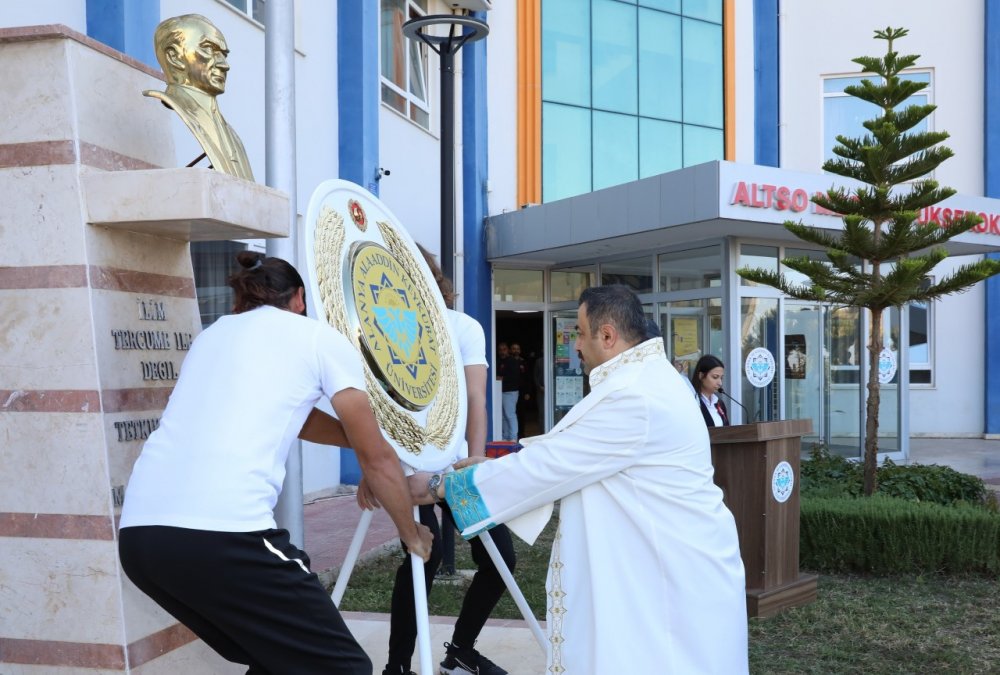 Alanya Alaaddin Keykubat Üniversitesi (ALKÜ), Ulu Önder Gazi Mustafa Kemal Atatürk’ün ebediyete irtihalinin 84’üncü yıl dönümünde ölümsüz liderini andı. ALKÜ Sanat, Tasarım ve Mimarlık Fakültesi ile ALTSO Meslek Yüksekokulu bahçesinde gerçekleştirilen çelenk sunma törenine ALKÜ Rektörü Prof. Dr. Ekrem Kalan, Rektör Yardımcıları Prof. Dr. Arife Uslu Gökceoğlu ve Prof. Dr. Nilgün Tatar’ın yanı sıra akademik ve idari personel ile öğrenciler katıldı. Atatürk Anıtı'na çelenk sunulmasıyla başlayan programda saatler 09.05’i gösterdiğinde sirenler eşliğinde iki dakikalık saygı duruşu gerçekleştirildi. Tören, saygı duruşunda bulunulmasının ardından İstiklal Marşı'nın okunması ile sona erdi.