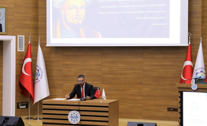 Konuşmasının devamında Alanya’nın antik tarihi ile ilgili kısa bilgiler veren Rektör Kalan, “Alanya gün gelir Korakesion, gün gelir Kalonoros ve Alâiye olur. Pek çok medeniyetten izler taşısa da halen yüzü Selçukludur. Alanya’ya bakanlar, onda Uluğ Alaaddin Keykubat’ın emeğini görür. İlk anda aşina eder kendini kartal yuvası kayalıklar ve onları süsleyen gerdanlık gibi surlar. Uluğ Alaaddin Keykubat, ilk fethinin şerefine Türk-İslam geleneğini burada uygular.” dedi.