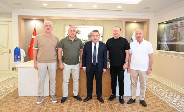 ALTSO Başkanı Eray Erdem, Başkan Yardımcısı Ahmet Paşaoğlu, Turizm Su Sporları Geliştirme Kamu Kurumlarını Destekleme Derneği (TUSKAD) Başkanı Ali Orkan ve Alanyaspor İkinci Başkanı Kamil Köseoğlu ile birlikte Antalya Büyükşehir Belediye Başkanı Muhittin Böcek’i makamında ziyaret etti.