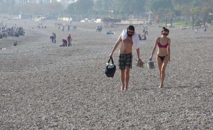 Hava sıcaklığının 19, deniz sıcaklığının 20 derece olduğu turizm kenti Antalya’da, Konyaaltı sahili doldu. Bölgede bulunan otellerde tatil yapan turistler denize girip sahilde güneşlendi. Antalyalılar ise güneşli havada balık tutup yeşilliklerde bol vakit geçirdi. Sahilde baba ve oğul gelen bir turist aile ise kano yaptı. Denizin keyfini çıkaran Mustafa yılmaz ise “harika, cennet gibi bir memleket burası, biraz serin ama yüzmeyi seviyorum” diye konuştu.