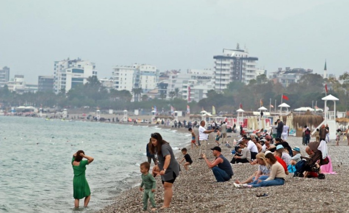 Yağmur beklenen Antalya’da Ramazan Bayramı’nın 1’inci günü, vatandaşlar havanın kapalı olmasına karşın dünyaca ünlü Konyaaltı Sahili’ne gelerek denizin keyfini çıkardı.
