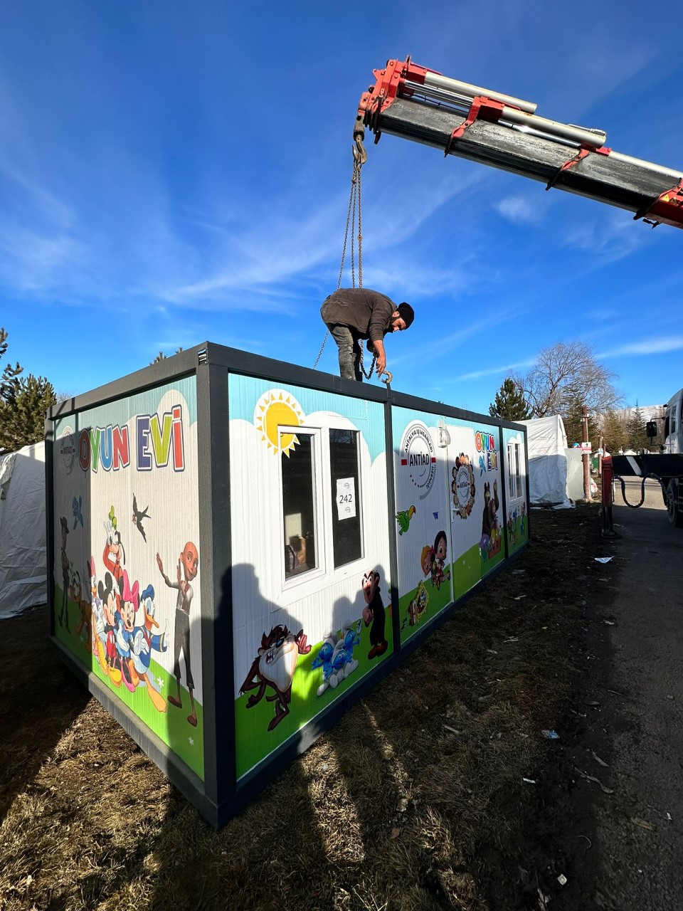 Bölgeye bugüne kadar 250 adet yaşam konteynerini ulaştırdıklarının altını çizen Başkan Bilal Köleoğlu, “Konteynerlerin içini boş göndermedik. Su, ekmek, çocuk bezi, ısıtıcı, yatak, yastık gibi birçok önemli ihtiyaçla doldurarak deprem bölgesine ulaşmasını sağladık. Ayrıca içi oyuncak dolu olan ANTİAD Çocuk Oyun Konteyneri’ni de AFAD Pınarbaşı Çadır Kenti’ne teslim ettik. Bölgede depremi yaşayan ve ağır psikolojik darbe alan çocuklarımızın bir nebze olsun mutlu olmasını istedik” dedi.