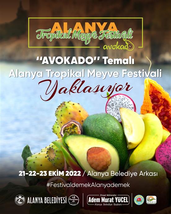 Festival ile ilgili açıklama yapan Alanya Belediye Başkanı Adem Murat Yücel, “Alanya, kent kimliği ve bilincine sahip kurumları ve sakinleri ile birçok öncü çalışmaya imza atmış büyük bir şehir. Turizmin başkenti Alanya aynı zamanda tropikal ürünleri, tarımı ve gastronomisi ile tanınmayı kesinlikle hak ediyor. Bizler de tarım ve gastronomiyi bir potada eriterek yepyeni bir konsept ile ‘Tropikal Meyve Festivali’ düzenliyor ve Alanya’nın önemli ürünlerine dikkat çekmeyi, mutfaklarda kullanım alanlarını genişletmeyi ve üreticilerimizi desteklemeyi hedefliyoruz. 21-22-23 Ekim 2022 tarihlerinde ‘Avokado’ temasıyla düzenlenecek olan festivale tüm halkımızı davet ediyorum.” dedi.