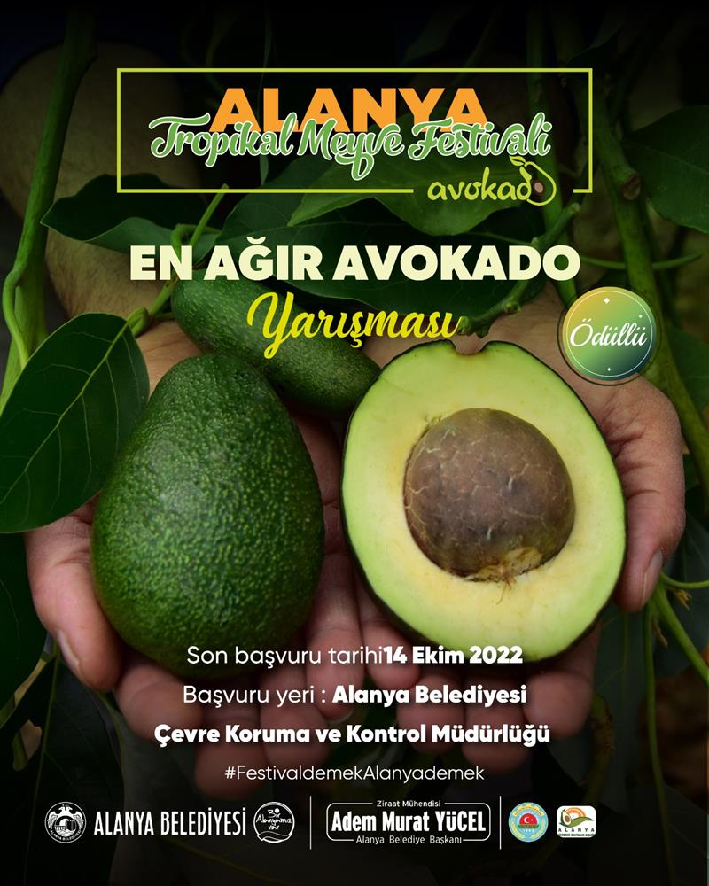 Avokadonun ve Alanya’nın tropikal meyvelerinin her yönüyle bir bütün olarak değerlendirileceği ve tanıtılacağı festival süresince farklı yarışmalar da düzenlenecek. Alanya Ziraat Odası ve Avokadocular Birliği işbirliği ile düzenlenecek olan ‘En Güzel Avokado Bahçesi’ ve ‘En Ağır Avokado’ yarışmaları bölgemizdeki tüm çiftçilerin rekabetine sahne olacak. Alın terini toprak ile buluşturan Alanyalı çiftçilerin yer alacağı yarışmaya katılım ücretsiz olup, başvurular Alanya Belediyesine şahsen yapılacaktır.