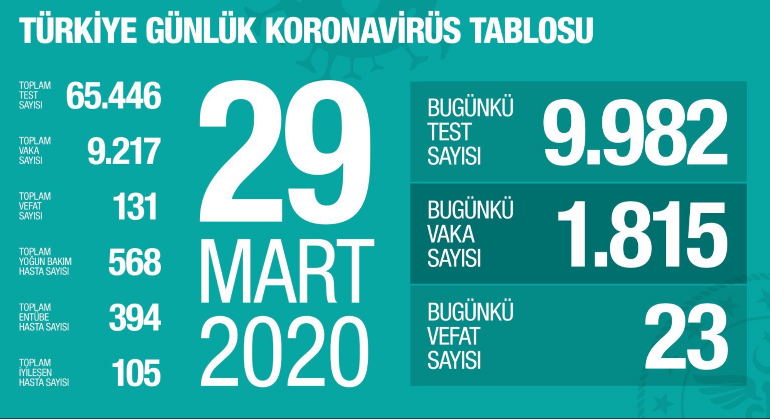 Türkiye'de koronavirüs hastalığı nedeniyle tedavi altındaki 25 kişi daha bugün hayatını kaybetti, ölü sayısı 131'e yükseldi.