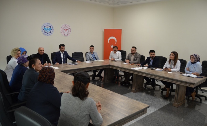 Başhekim Doç. Dr. Güler ve hastane yönetimi; 33. Ulusal Nefroloji hemşireliği kongresinde başarılı sunumlarından dolayı Hemşire Meryem Sarıaltın, Eda Tunç’a, Toplum ve Ruh Sağlığı Merkezinde göstermiş oldukları hassasiyet ve özverili çalışmaları için Gülay Er ve Hasan Kaya’ya, Gebe okulunda göstermiş olduğu başarılı ve özverili çalışmalarından dolayı Ayşe Başar Akdoğan teşekkür belgesi taktim etti. Birim sorumlularından birimlerinde yaşamış oldukları sorun, ihtiyaçlarını dinledi. İstek ve önerilerini not aldı. Başhekim Yılmaz Güler,” Sağlık teşkilatının en önemli unsurlarından birisi olan sizler önce insan diyerek gece gündüz demeden büyük bir sabır, dikkat, sevgi ve hoşgörü ile görevlerinizi yürütmektesiniz. Hepimiz sağlık zincirinin bir parçasıyız ve birlikte güçlüyüz. Çözüm odaklı çalışmalarınız ve gayretleriniz sayesinde her türlü sorunun altından kalkabileceğimize inancımız sonsuzdur. Çalışmalarınız için teşekkür eder, başarılarınızın devamını dilerim” ifadelerini kullandı.