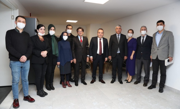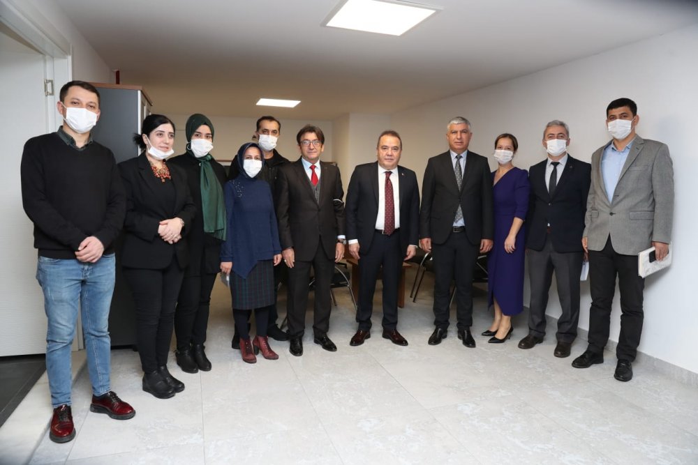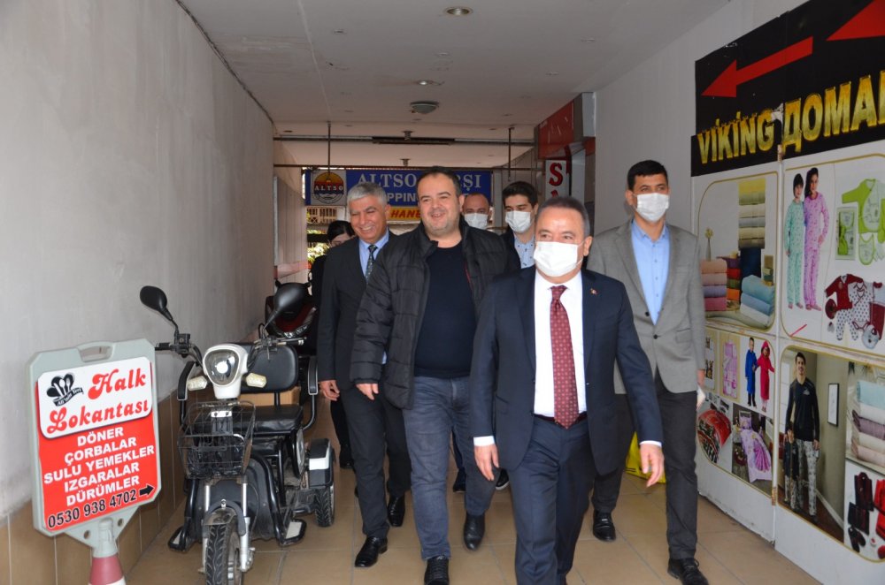 Antalya Büyükşehir Belediye Başkanı Muhittin Böcek, Antalya Büyükşehir Belediyesi Alanya Ek Hizmet Binası’nda incelemelerde bulundu. Alanya Hizmet Birimi ve ATASEM’in de içinde yer aldığı 4 katlı binada vatandaşlara hizmet verilecek. Başkan Muhittin Böcek, bazı daire başkanları ile birlikte geldiği Alanya’da CHP Antalya Büyükşehir Belediye Meclis Üyesi Erkan Demirci ve Alanya Şube Müdürü Mustafa Karaduman ve ASAT Şube Müdürü Ümit Demirel ve personel tarafından karşılandı. Binaya girmeden önce esnafı da ziyaret eden Böcek, hal hatır sordu ve onlarla fotoğraf çektirdi. Daha sonra ATASEM ve İlçe hizmet birimini gezen böcek, müdürlerden çalışmalarla ilgili bilgi aldı personelle sohbet edip fotoğraf çektirdi. Yeni binanın eksiklerinin giderilmesi için talimat veren Böcek, “ Alanya bizim için önemli bundan sonra daha sık buraya geleceğiz ve yeni binamızla birlikte hizmetlerimizi daha güzel bir şekilde vatandaşlarımıza ulaştıracağız. “