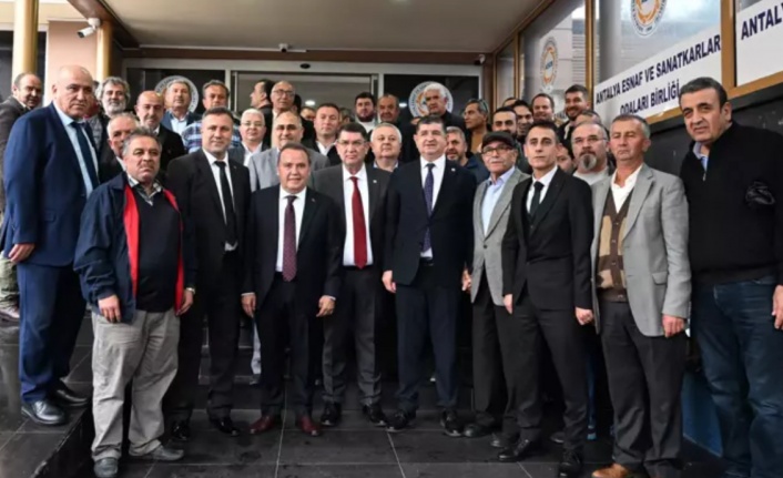 Antalya Büyükşehir Belediyesi Başkanı ve Başkan Adayı Muhittin Böcek, seçimçalışmaları kapsamında sivil toplum kuruluşları buluşmalarına devam ediyor. Başkan Böcek, Döşemealtı İş İnsanları ve Sanayicileri Derneği, Salı Sanayici ve İş İnsanları Grubu, Otobüsçüler Odası ve Antalya Ticaret Platformu üyeleri ile bir araya gelerek, hizmet ve geleceğe dönük projelerini anlattı. 5 yıl boyunca kimseyi ötekileştirmeden, ortak akılla Antalya'ya hizmet ettiklerini belirten Başkan Böcek, gelecek dönemde Antalya'nın yarınlarını inşa ederken de kent dinamikleri ile birlikte hareket ederek, ilk günkü azim ve kararlılıkla ortak akıl çizgisinden ayrılmadan çalışmalarına devam edeceklerini söyledi.