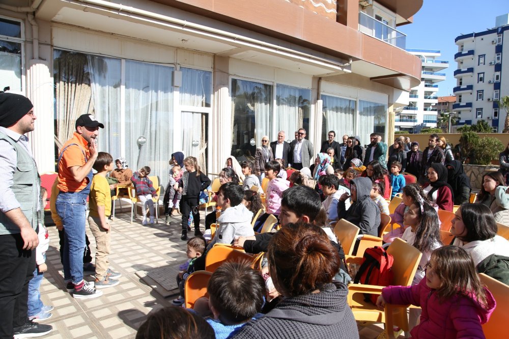 ‘Geleceğimizin teminatı çocuklarımızın her zaman yanındayız’ diyen Başkan Erdem, “Yaşadığımız büyük felaketin ardından, yurtlarını bırakıp Alanya'mıza gelmek zorunda kalan depremzedelerimizi, ALTSO Tiyatro Kulübü oyuncularımız ile birlikte ziyaret edip, geçmiş olsun dileklerimizi ilettik. Alanya'mızda misafir ettiğimiz deprem mağduru kıymetli çocuklarımıza da ALTSO Tiyatro Kulübü oyuncularımız 'Afacan Alican' isimli oyunlarını sahnelediler.
