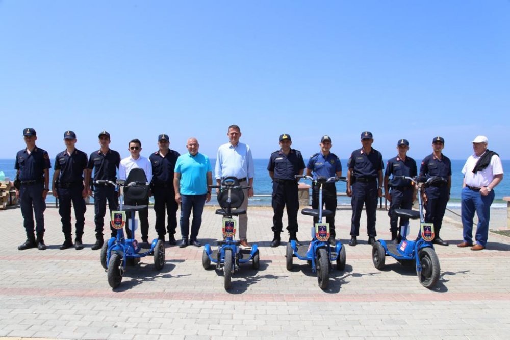 Törende konuşan Kaymakam Dr Fatih Ürkmezer sahil bandında asayişin sağlanmasında çok önemli katkıları olan ve Ginger olarak bilinen Elektrikli Bisikletleri Jandarmaya bağışlayan ALTSO Başkanı Mehmet Şahin’e teşekkür etti. Jandarma Komutanı Engin Burak Mindivanlı da yaylalardan sonra sahil bandının korunması konusunda da desteklerini esirgemeyen ALTSO Başkanı Mehmet Şahin’e teşekkür etti.  Alanya Kaymakamı Dr Fatih Ürkmezer, ALTSO Başkanı Mehmet Şahin, Kaymakam Refiki Ramazan Kıyak, Jandarma Komutanı Engin Burak Mindivanlı ve Alanya Emniyet Müdürü Murat Kenan Patat'ın da yer aldığı programda, elektrikli bisikletlerin sahil güvenliği açısından önemine dikkat çekildi.