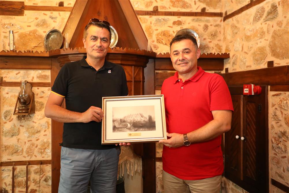 Toplantının ardından Atılay Uslu ve ekibine Alanya’nın tarihi ve kültürel noktalarını gezdiren Başkan Yücel, ekibe ipek kozasından tablo, Alanya’nın silueti ve Sevgi Hep Vardı temalı “Sevgi Taşı” hediye etti.