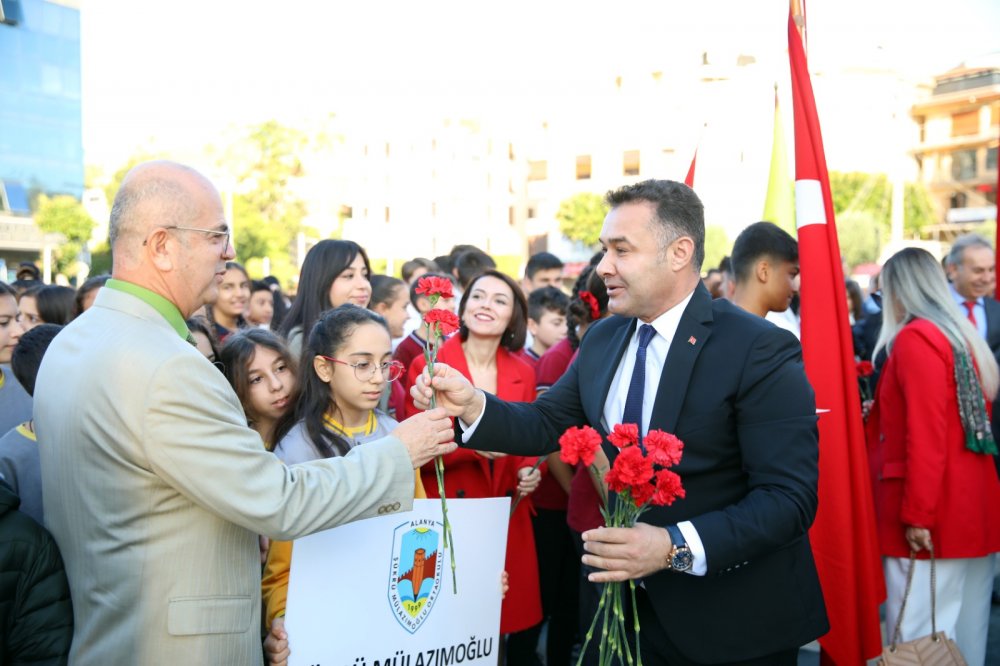 24 Kasım Öğretmenler Günü nedeniyle Atatürk Anıtı önünde gerçekleşen törene katılan Alanya Belediye Başkanı Adem Murat Yücel, törenin sonunda alanda bulunan öğretmenlere karanfil takdim ederek Öğretmenler Günü’nü kutladı. Başkan Yücel ardından Alanya Kaymakamlığı, Alanya İlçe Milli Eğitim Müdürlüğü ve Şehit Ömer Halisdemir İlkokulu’nun düzenlediği etkinliğe katıldı.