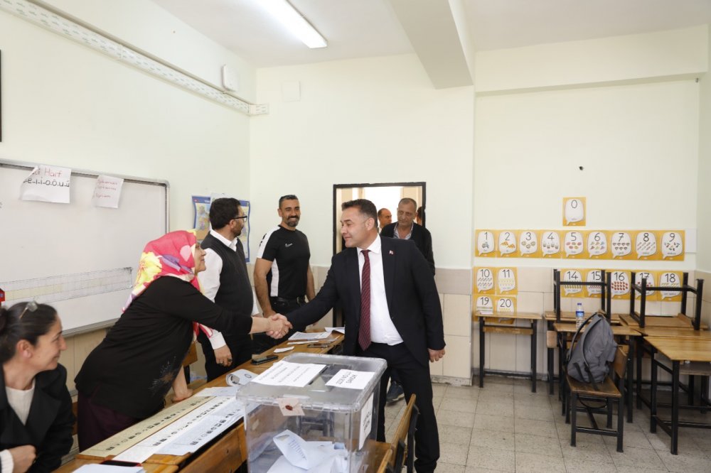 Başkan Yücel daha sonra Cumhur İttifakı Meclis Üyesi Adayları ile birlikte doğu, batı ve merkezdeki okulları ziyaret etti. Sandık başındaki görevlilere kolay gelsin dileklerini ileten Başkan Yücel, oy kullanan vatandaşlara da hayırlı olsun temennisinde bulundu.