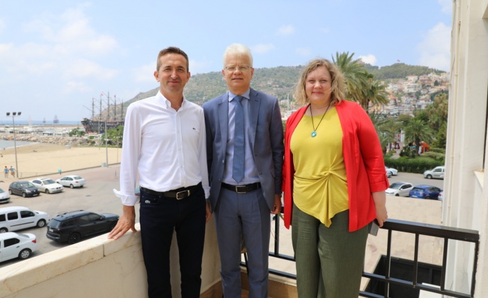 Alanya Belediye Başkanı Adem Murat Yücel'in yerine vekalet eden Alanya Belediye Meclis Üyesi Mehmet Ali Tekin, Litvanya Ankara Büyükelçisi Ricardas Degutis'i ağırladı. Antalya ziyaretlerinin ardından Alanya'ya gelen Büyükelçi Degutis, iki ülke arasındaki kültürel, ekonomik ve turizm konularından bir görüşme gerçekleştirdi. Başkan Vekili Tekin ile fikir alış verişinde bulunan Büyükelçi Degutis, Alanya'ya ilk kez geldiğini ve çok beğendini belirtti. Başkan Vekili Tekin ise Büyükelçi Ricardas Degutis'i ağırlamaktan büyük memnuniyet duyduklarını belirterek, “Alanya'mız Litvanya ile her zaman yakın ilişkileri olan bir şehir olmuştur. Kendileri ile iki ülke arasındaki ilişkileri ve turizm konularını ele aldık. Sayın Büyükelçimize bizleri ziyaret ettikleri için teşekkürlerimi sunuyorum” dedi. Başkan Vekili Mehmet Ali Tekin, Litvanya Büyükelçisi Ricardas Degutis'e Alanya muz lifinden yapılmış tablo hediye ederken, Büyükelçi Degutis'te kendi kültürüne ait hediyeye takdim etti.
